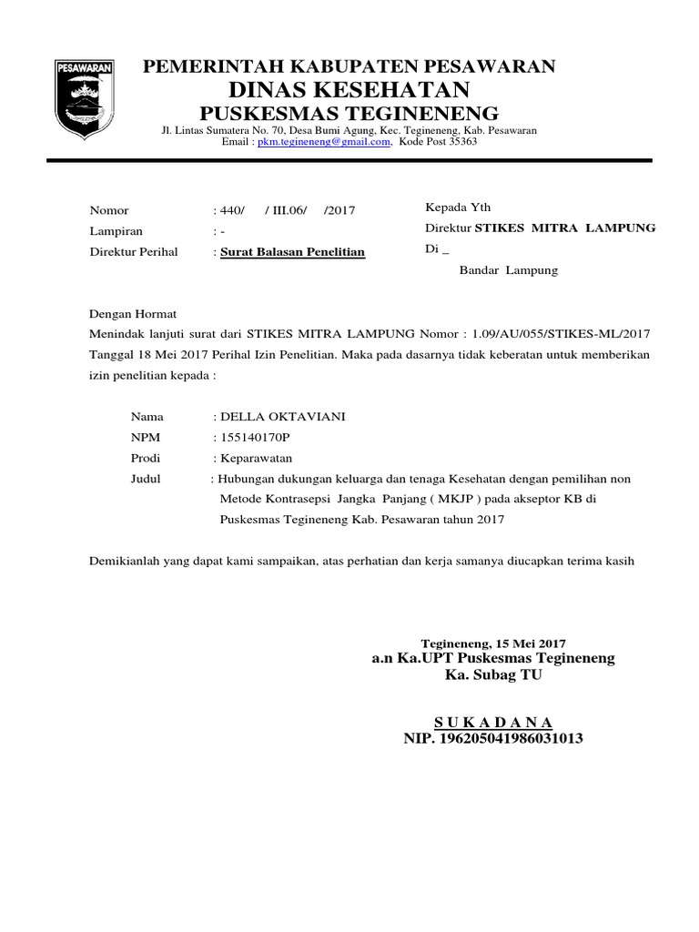 Dan ketika suatu pihak menerima surat dari pihak lain maka pada umumnya mereka akan menggunakan surat balasan untuk menanggapi surat tersebut. Contoh surat balasan penelitian yang baik dan benar sebagai referensi pembuatan surat resmi yang dapat diunduh secara gratis dan. Dengan mengikuti contoh isi balasan surat penawaran, dapat meminimalisir kesalahan dalam membuat surat balasan. Dengan surat saudara pada tanggal 20 november 2019 perihal perizinan penelitian dalam rangka untuk penyusunan skripsi mahasiswa atas nama ilham zulfikar dengan judul, analisis korelasi metode pengajaran murid sdn. Jika ada sedang mencari contoh surat balasan izin penelitian skripsi dari perusahaan.