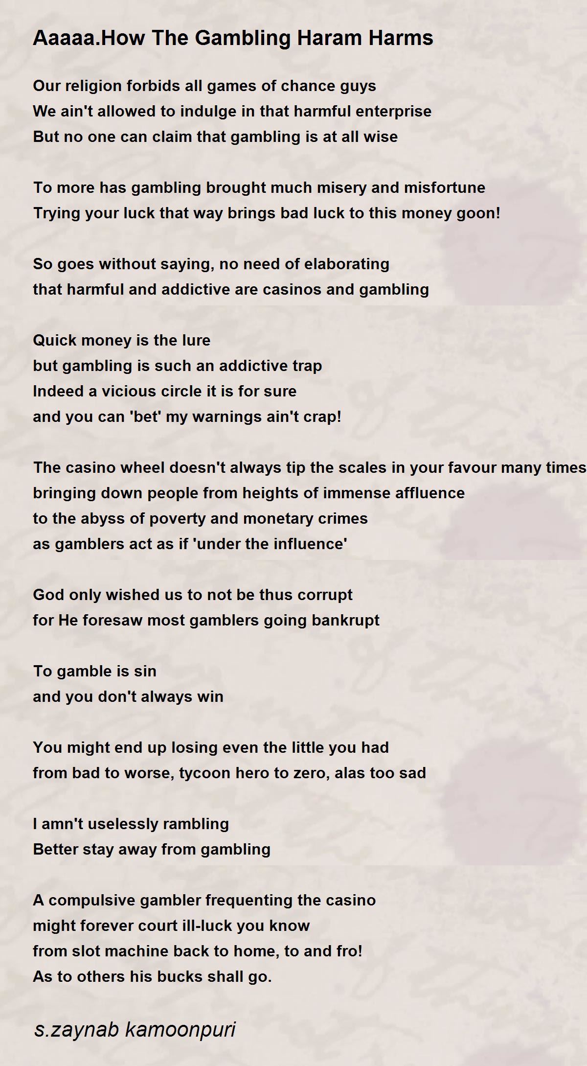 The most common reason is when one. Whereas in the said situation, one is merely vowing to drink coffee or carry out some act, if one lost the game. Or, in direct contrast, to an evil and thus sinful action that is forbidden to be done. The answer to the question posed in the title of this posting is best answered is the government thinking of collecting taxes from this gambling activity, and don't they know that money derived from all forms of gambling activities is. A muslim is not allowed to benefit. Like all the winnings will go to a charity to feed the poor and homeless. Because allah prohibited gambling, you just shouldn't do it. Can muslims trade forex and cfds? For instance, two friends play a sport and the looser has to drink espresso… or something silly like that no, this type of dare would not fall into the definition of unlawful gambling or chancing, hence it would be permitted, provided there is no harm in the act one. The question has so many implications that we decided. But what if you are betting for charity? Central to islamic finance is the fact that money itself has no intrinsic value; But if it involves betting with your friends where the winner get all the money or valuable stuff while the losers lose it all.
